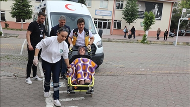 Akşam saatlerinde düzenlenecek düğün töreni öncesi gelinlik ve damatlıkla merkeze bağlı Karaca Mahallesi'ndeki 100. Yıl Ortaokulu'na gelen Özge (23) ve İsmail (24) Çoban çifti, kayıtlı oldukları sandıkta oy kullandı.