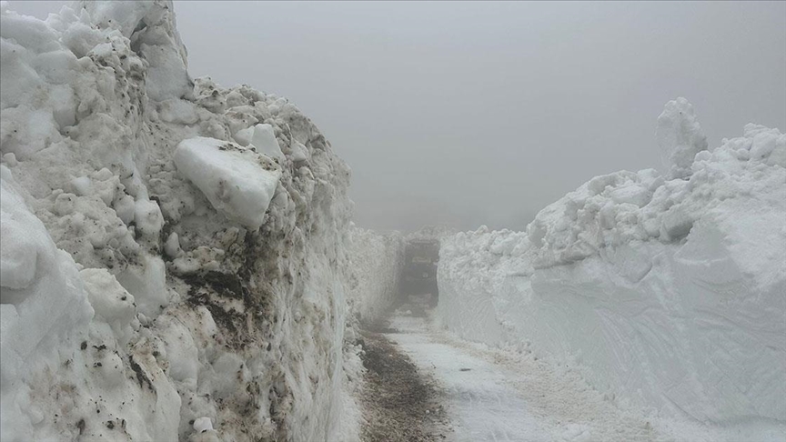 Anlık gelişmeler için AA Canlı Ekipler, kar kalınlığının yer yer 2 metreye ulaştığı güzergahta iş makineleriyle yolu ulaşıma açmaya çalışıyor.