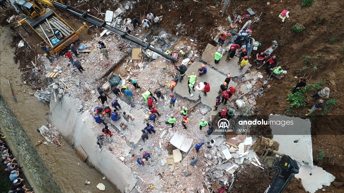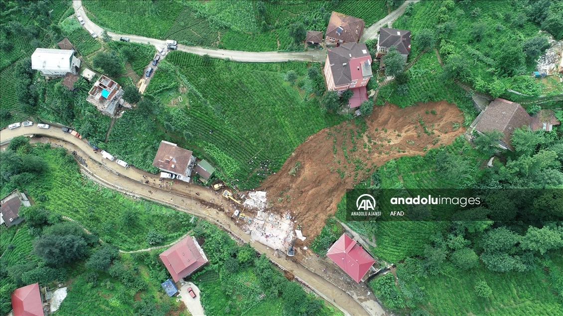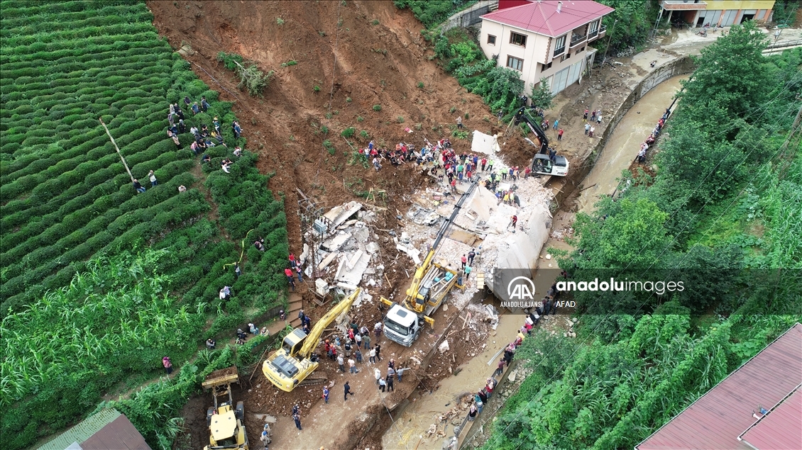 Rize'deki sel ve heyelanın ardından hasar tespiti ile arama çalışmaları sürüyor