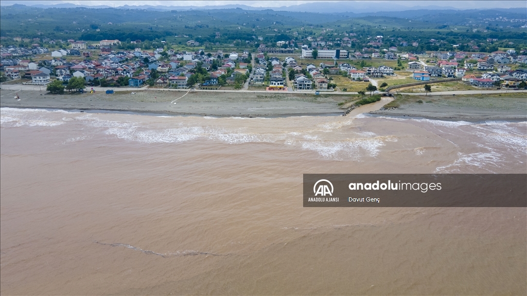 Kent genelinde etkisini gösteren sağanağın ardından yüksek noktalardaki ağaç ve kaya parçaları ile atıklar, debileri yükselen Melen Nehri ve Islak Ağzı deresiyle denize sürüklendi.