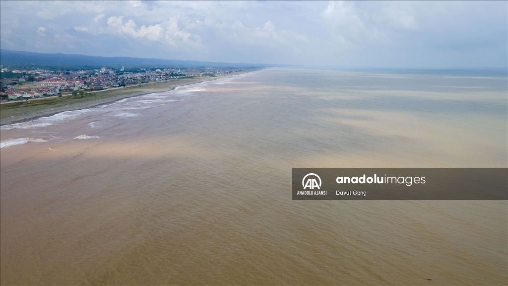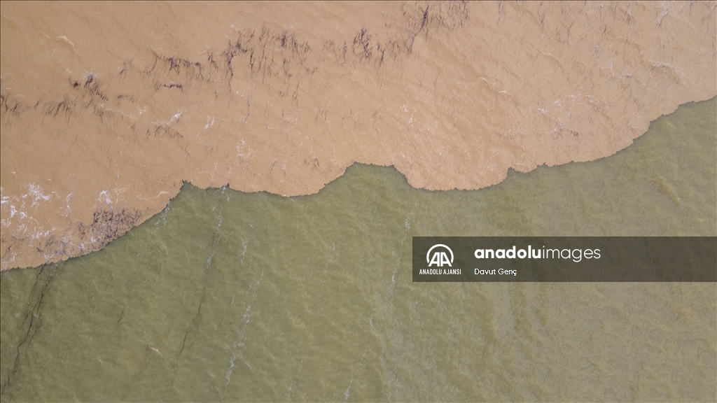 Suyun, rengi kahverengiye dönüşen kıyı şeridi ve kirlilik havadan görüntülendi.