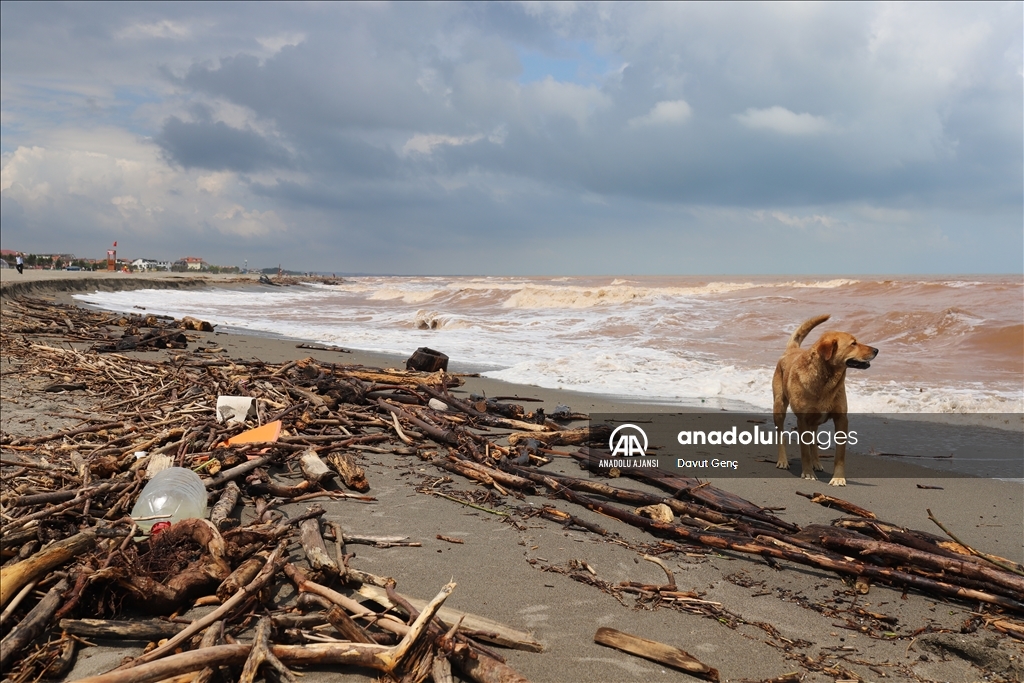 16 kilometrelik sahil şeridinde suyun rengi kahverengiye dönerken çok sayıda plastik şişe, kaya, ağaç ve odun parçaları ile tıbbi atıklar yer yer plajda kirlilik oluşturdu.
