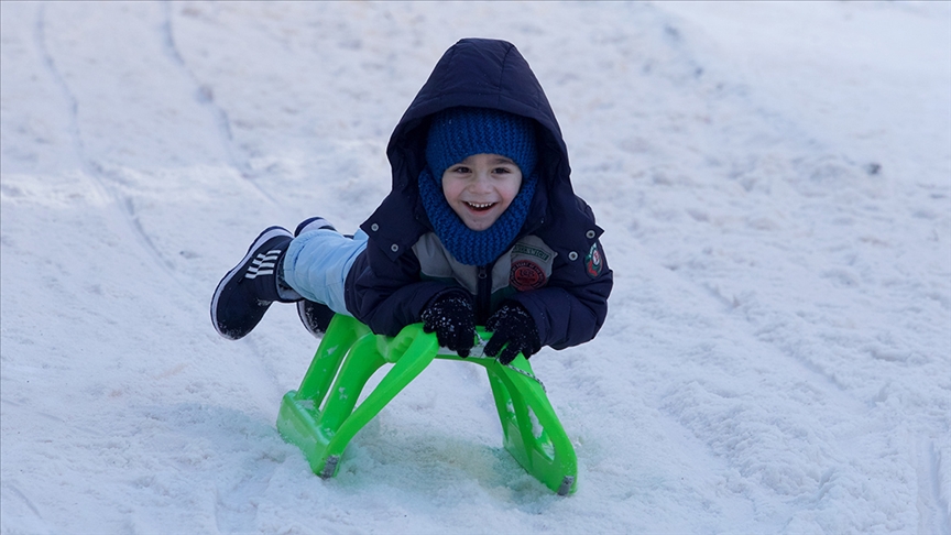 Belediye ekiplerinin ise bu bölgede çocukların eğlencesini bozmamak için kar temizleme çalışması yapmadığı öğrenildi.