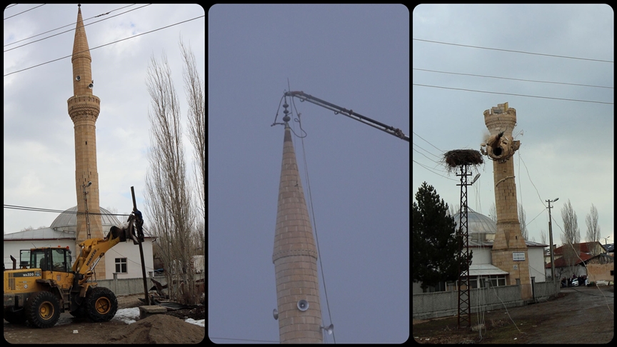 Şarkışla'da depremde hasar gören minare kontrollü yıkıldı