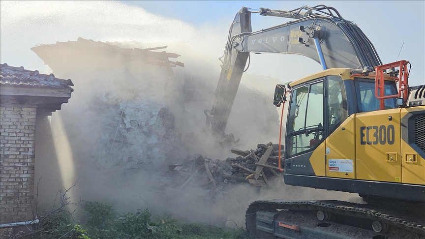 Anlık gelişmeler için AA Canlı Ekipler, süreci tamamlanan binalarda kontrollü yıkım gerçekleştiriyor.