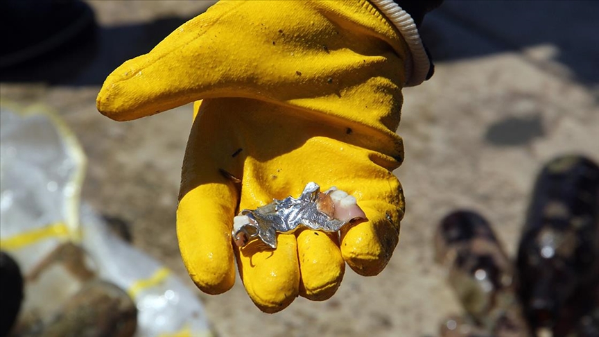 Yüzeye çıkarılan cam şişelerin içindeki yavru balıklar dalgıçlarca tekrar denize salınırken, atık malzemeler arasında bir adet martı yumurtası bulundu.