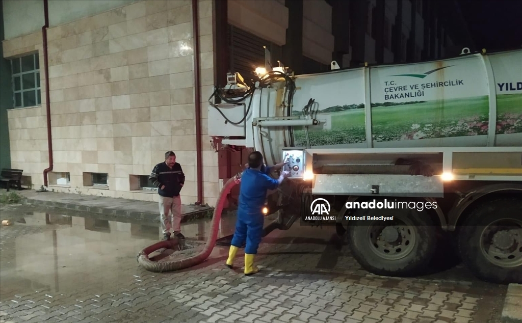 Zara Belediyesi ekipleri cadde ve sokaktaki suları tahliye ederken, vatandaşlar da ev ve bahçelerinde çalışma yaptı.