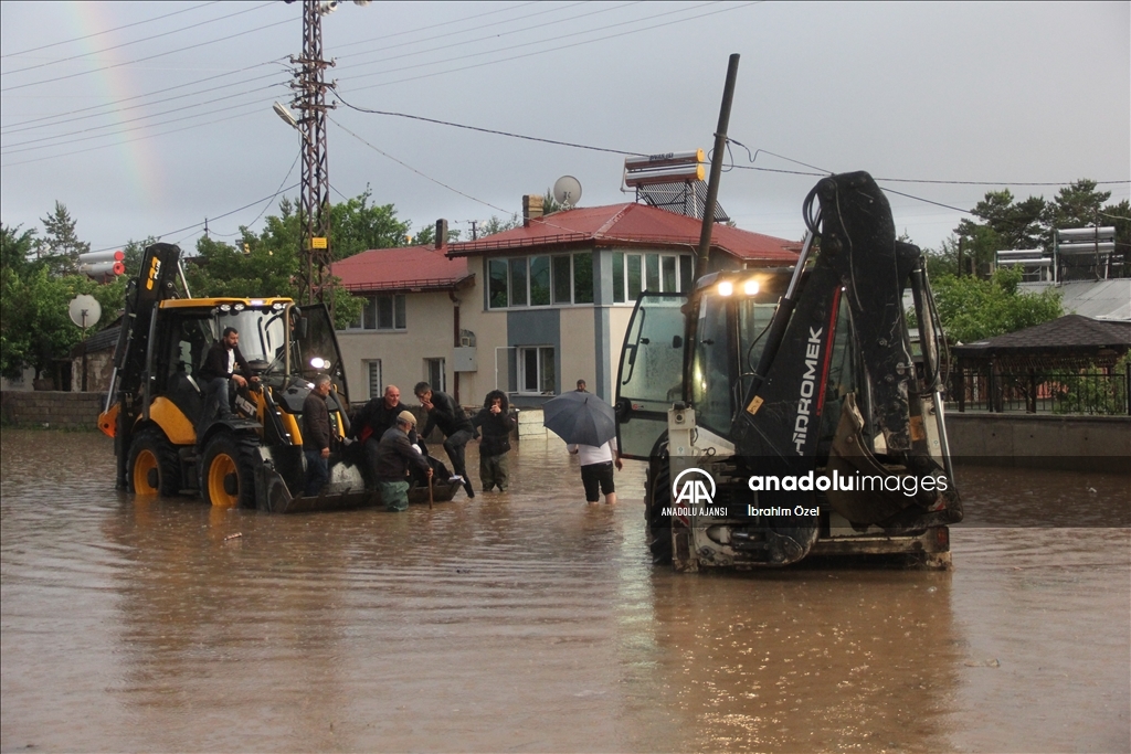 Sivas'ın Zara ve Yıldızeli ilçelerinde sağanak nedeniyle bazı evleri ve iş yerlerini su bastı.