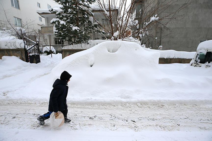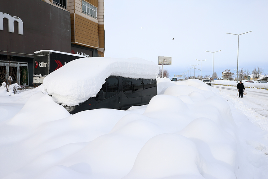 Beyaza bürünen kentte araçlar, otobüs durakları ve tek katlı evler karla kaplandı, vatandaşlar da araçlarının üzerinde, ev ve iş yerlerinin önünde biriken karları temizlemeye çalıştı.