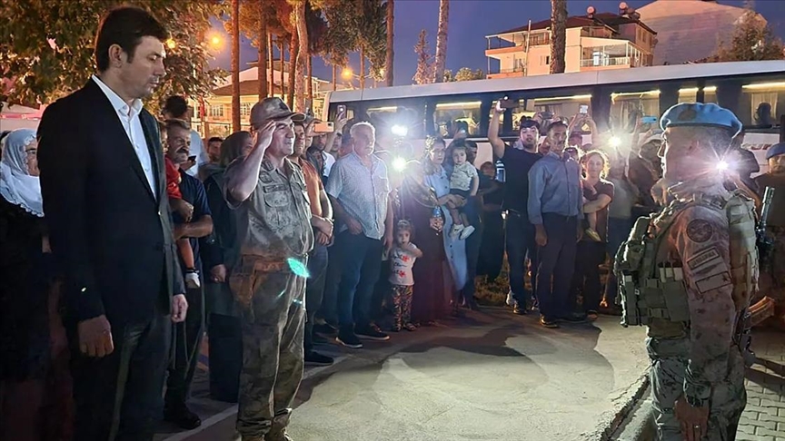 Karşılama törenine İl Jandarma Alay Komutanı Albay Bilgihan Yeşilyurt ve İlçe Jandarma Komutanı Yüzbaşı Mehmet Yaman ile askerlerin aileleri katıldı.