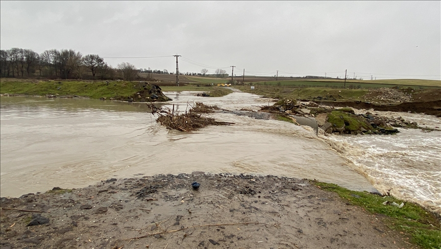 Tekirdağ'ın Çorlu ilçesinde, aşırı yağış ve karların erimesi nedeniyle Ergene Nehri'nin kollarından biri olan Çorlu Deresi taştı.