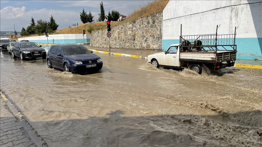 Hayrabolu ve Trabzon Caddesi'ni kullanan sürücüler su birikintileri nedeniyle trafikte yavaş seyretmek zorunda kaldı.