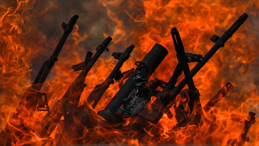 15'i kadın 30 kişiden oluşan PKK'lı grup, ellerindeki silahları içinde ateş bulunan büyük bir kazana atarak imha etti.