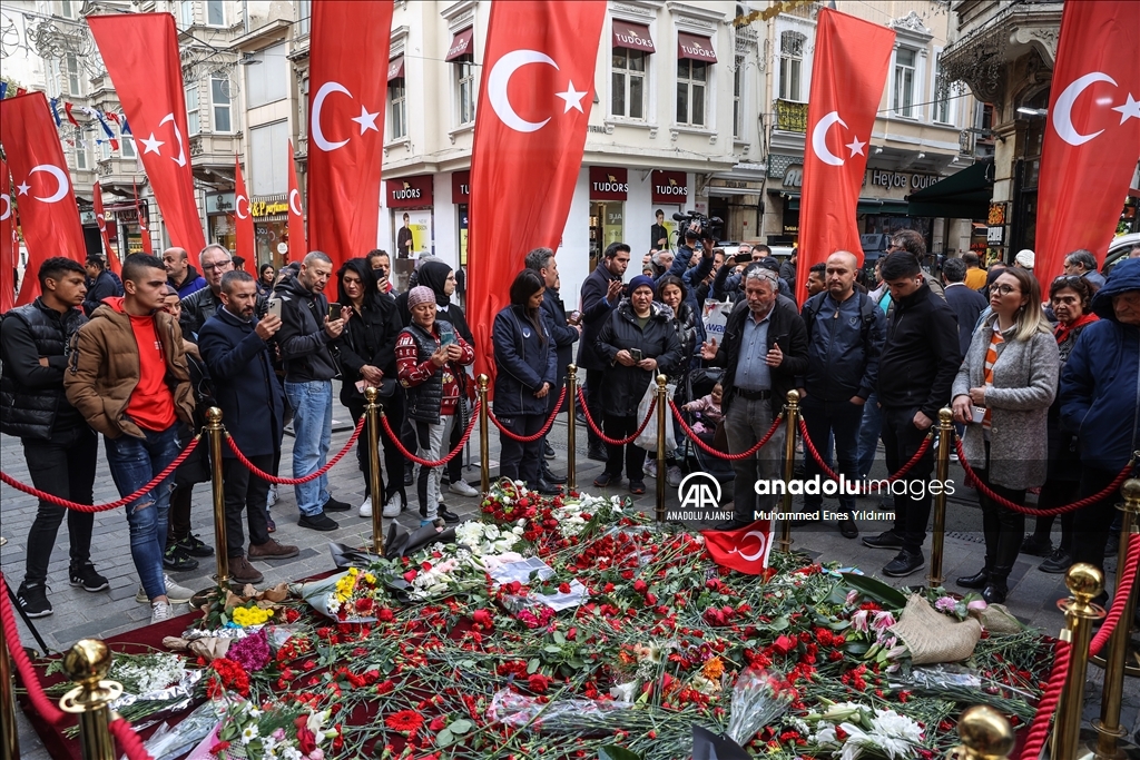 İstiklal Caddesi'ndeki terör saldırısında hayatını kaybedenler, olayın yaşandığı alana karanfiller bırakılarak anılıyor.