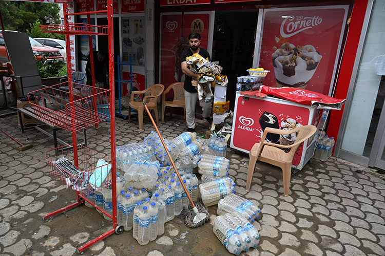 Erbay, hayatın normale dönmeye başladığını belirterek, "O anda içeride kaldım ve ne yapacağımı şaşırdım. İş yerinin kapıları kapandı ve anahtar kayboldu. Anahtarı bulduktan sonra kendimi dışarıya attım. Şu anda temizlik yapmaya çalışıyoruz. Zarar gören ürünlerimizi gelen çöp arabasıyla attık." diye konuştu.
