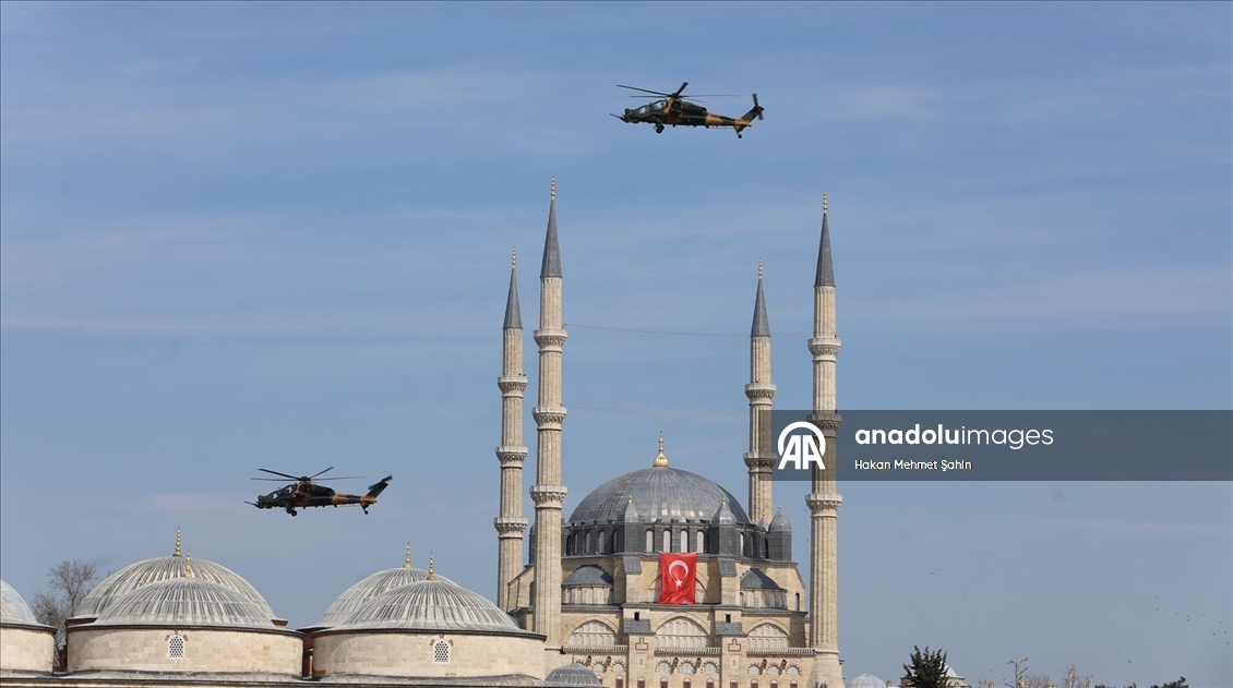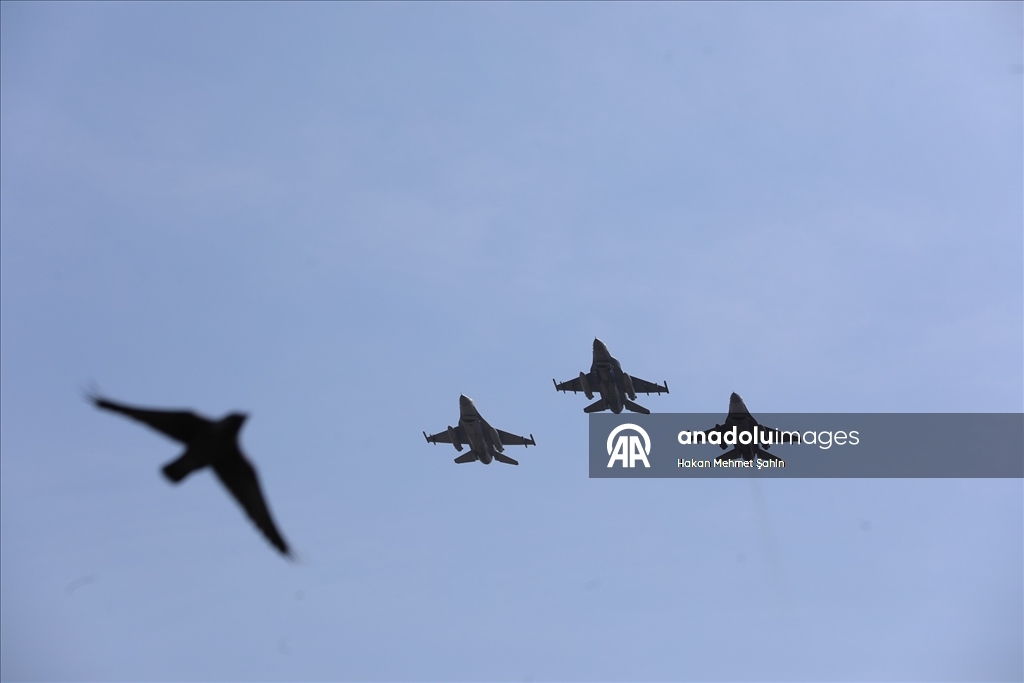 F-16'ların saygı uçuşu yaptığı etkinlikte, taarruz helikopterleri ATAK ve Baykar Bayraktar TB2 ile Akıncı geçiş yaptı.
