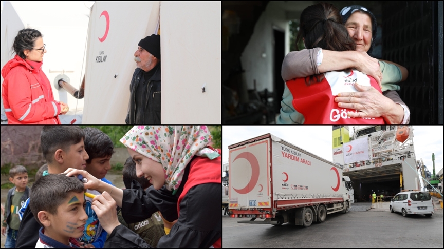 "Kızılay bölgede beslenme, gıda yardımı, barınma, sağlık hizmetleri, psikososyal destek ve kan hizmetleri alanlarında hizmet sağladı. Hala deprem bölgesinde iyileştirme faaliyetlerini sürdürüyoruz. Afet sonrası iyileştirme faaliyetlerini yürütmek üzere depremden en çok etkilenen Hatay, Kahramanmaraş, Adıyaman, Malatya, Osmaniye ve Gaziantep olmak üzere 6 ilde Toplumsal Hizmet merkezleri kurduk. Bu merkezlerle afetzedelerimize doğrudan temas ediyoruz. Kurduğumuz konteyner kentlerde ihtiyaçlarını karşıladığımız 4 bin 873 afetzedemiz konaklıyor."