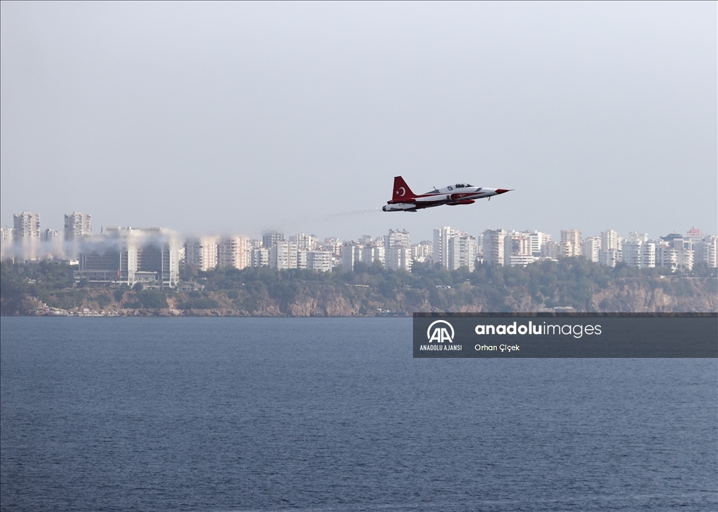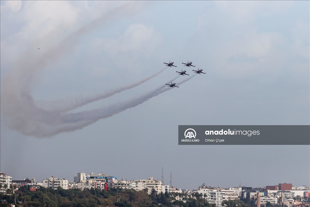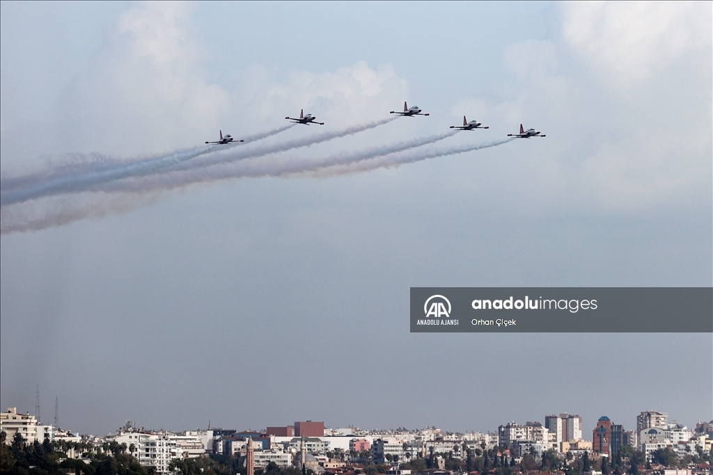 Bu kapsamda Türk Yıldızları, Konyaaltı Sahili başta olmak üzere Antalya semalarında yaklaşık 30 dakika süren "Ata'ya saygı" uçuşu yaptı.