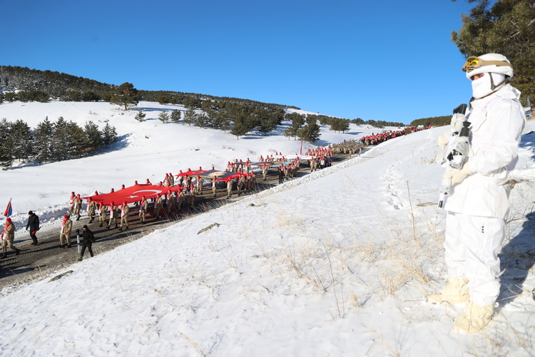 Kars'ın Sarıkamış ilçesinde, Sarıkamış Harekatı'nın 109. yılı anma etkinlikleri çerçevesinde düzenlenen yürüyüş sona erdi.