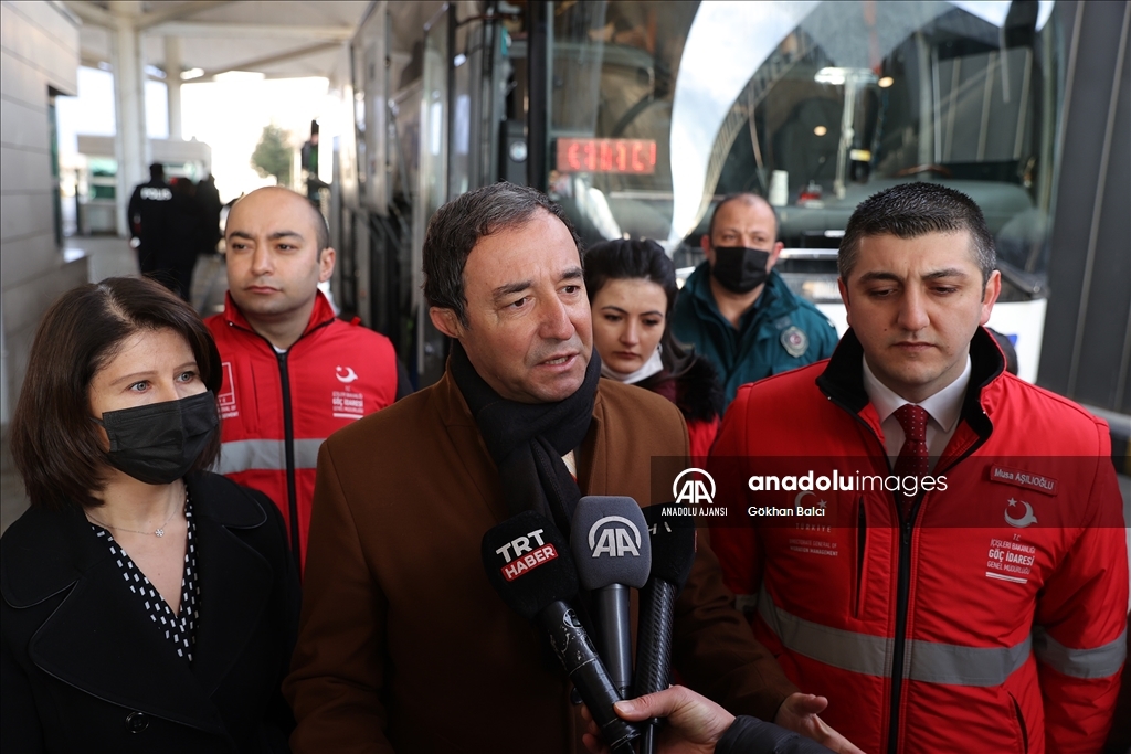 "Çocuklar ve kadınlar çıkarıldı. Bizi sınıra kadar getirdiler. Oradan Türkiye Büyükelçiliği, Konsolosluk ve Diyanet Vakfı bizi karşıladı. Sıcak çorba ikramında bulundu, ısınmamızı sağladı. Ardından buraya geldik. Çok teşekkür ediyorum. Eşlerimiz orada kaldı. Yol boyunca eşlerimizle konuştuk. Birçoğumuzun eşi cephedeler. Eşlerimiz, kadın ve çocukları bombardıman yapılan yerlerden çıkarmaya çalışıyorlar."