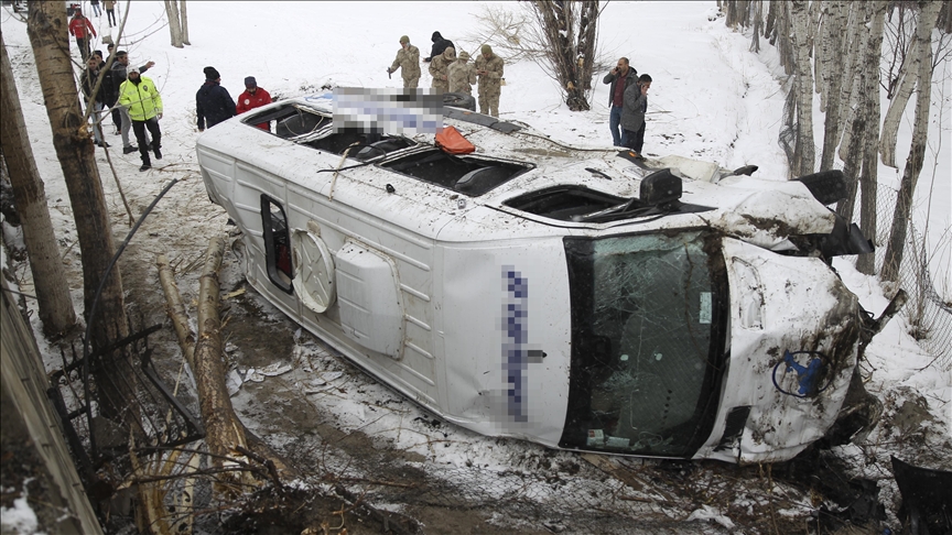 Haber verilmesi üzerine bölgeye sevk edilen AFAD, UMKE, 112 Acil Servis ve itfaiye ekipleri, minibüste sıkışan 4 kişiyi çıkardı.