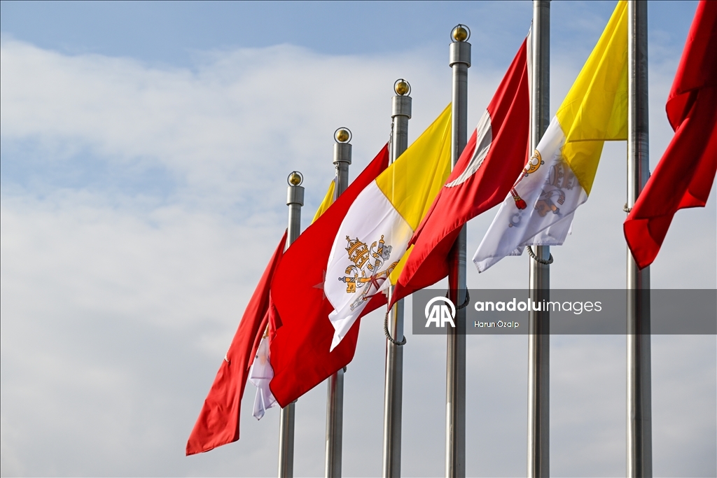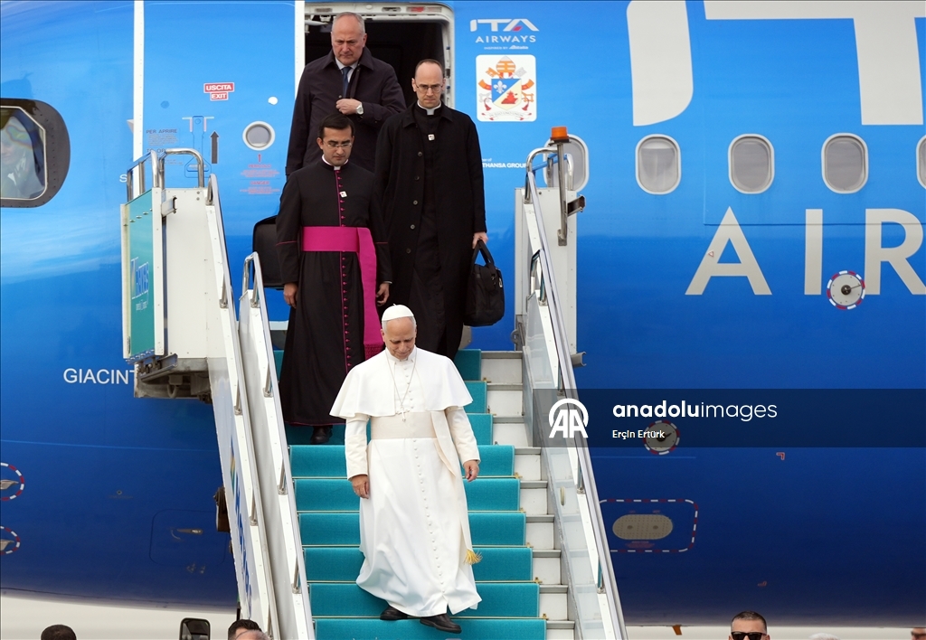 Papa 14. Leo, havalimanında Kültür ve Turizm Bakanı Mehmet Nuri Ersoy ve yetkililer tarafından karşılandı.
