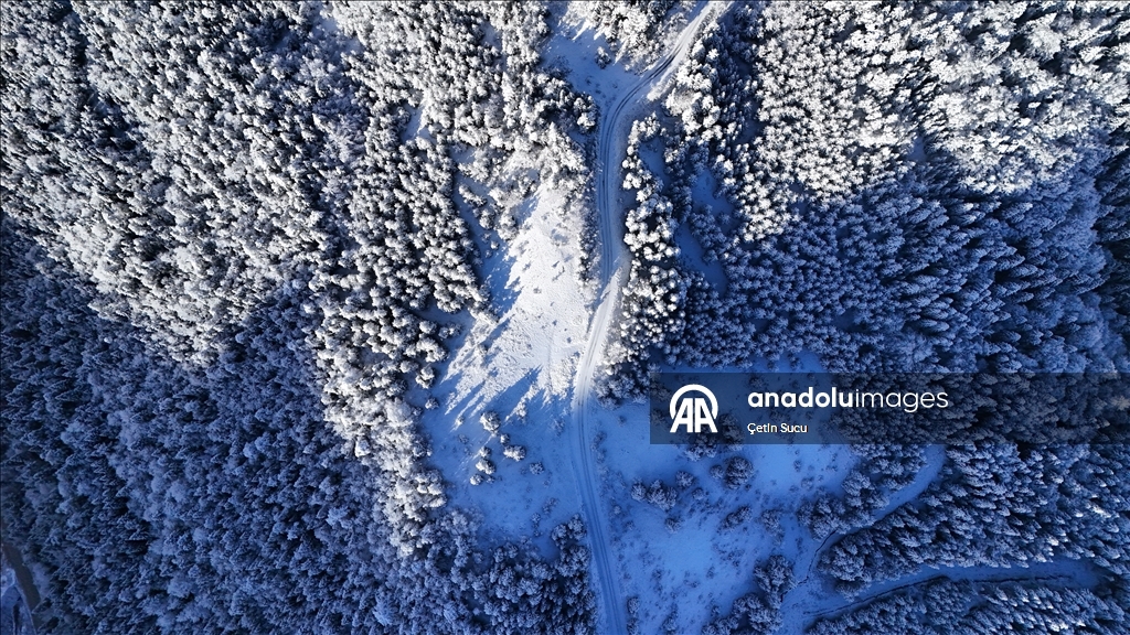 Kar yağışı sonrası beyaz örtüyle kaplanan çam ağaçları fotoğrafçıların ilgisini çekti.