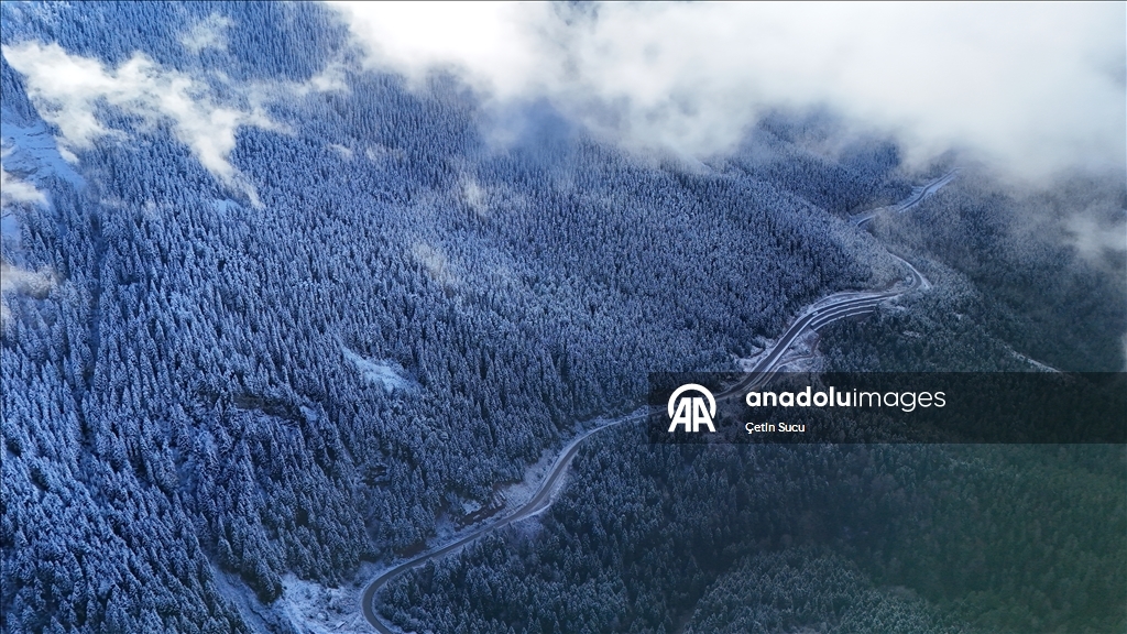 Abana, Bozkurt ve Çatalzeytin ilçelerini il merkezine bağlayan kara yolu güzergahında yer alan Yaralıgöz Dağı'ndaki kar ve sis tabakası güzel görüntüler oluşturdu.