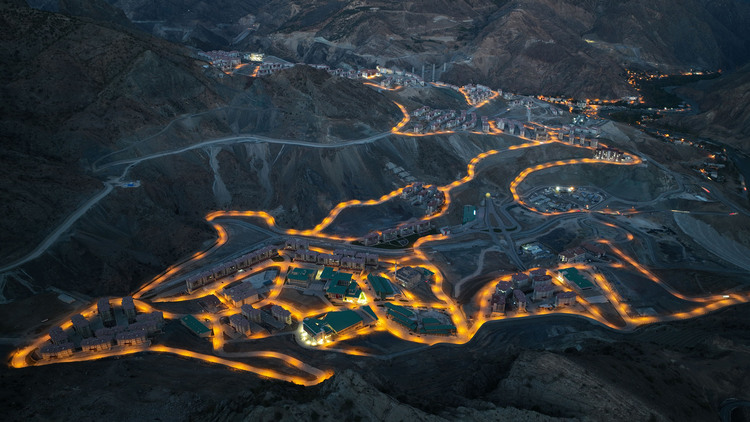 Artvin'de, Yusufeli Barajı nedeniyle sular altında kalacak Yusufeli ilçesi merkezinin taşınma işlemlerinin sürdüğü yeni yerleşim yerinin gece havadan görüntüsü kaydedildi.