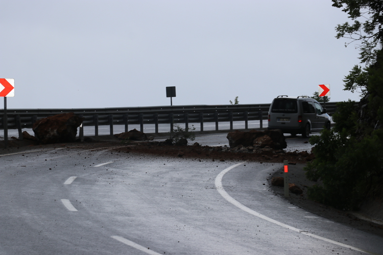 Güvenlik güçleri, büyük kaya ve ağaç parçalarının düştüğü yolu ulaşıma kapattı. Polis ve jandarma ekipleri, uzun araç kuyruklarının oluştuğu bölgede sadece sağlıkla ilgili acil durumu olanların kontrollü geçişine izin veriyor.