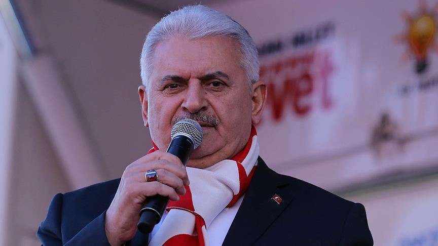 Başbakan Yıldırım, sivil, demokratik, özgürlükçü, 80 milyonun her ferdini kuşatan bir anayasayı yapma sözü verdiklerini belirterek, "İşte gün bugündür. O anayasayı siz yapacaksınız. 16 Nisan'da vereceğiniz destekle, oylarla bunun kararını vereceksiniz. Milletin yapacağı anayasadan korkanlar şimdi kol kola girdiler. FETÖ, PKK, DEAŞ hepsi 'Hayır' kampanyası için çalışıyor. Bunları gören Avrupa da boş durmuyor. Avrupa da onlara katıldı. İstediğiniz kadar beraber olun, ne yaparsanız yapın, bu millet bu oyunu bozar." ifadelerini kullandı.