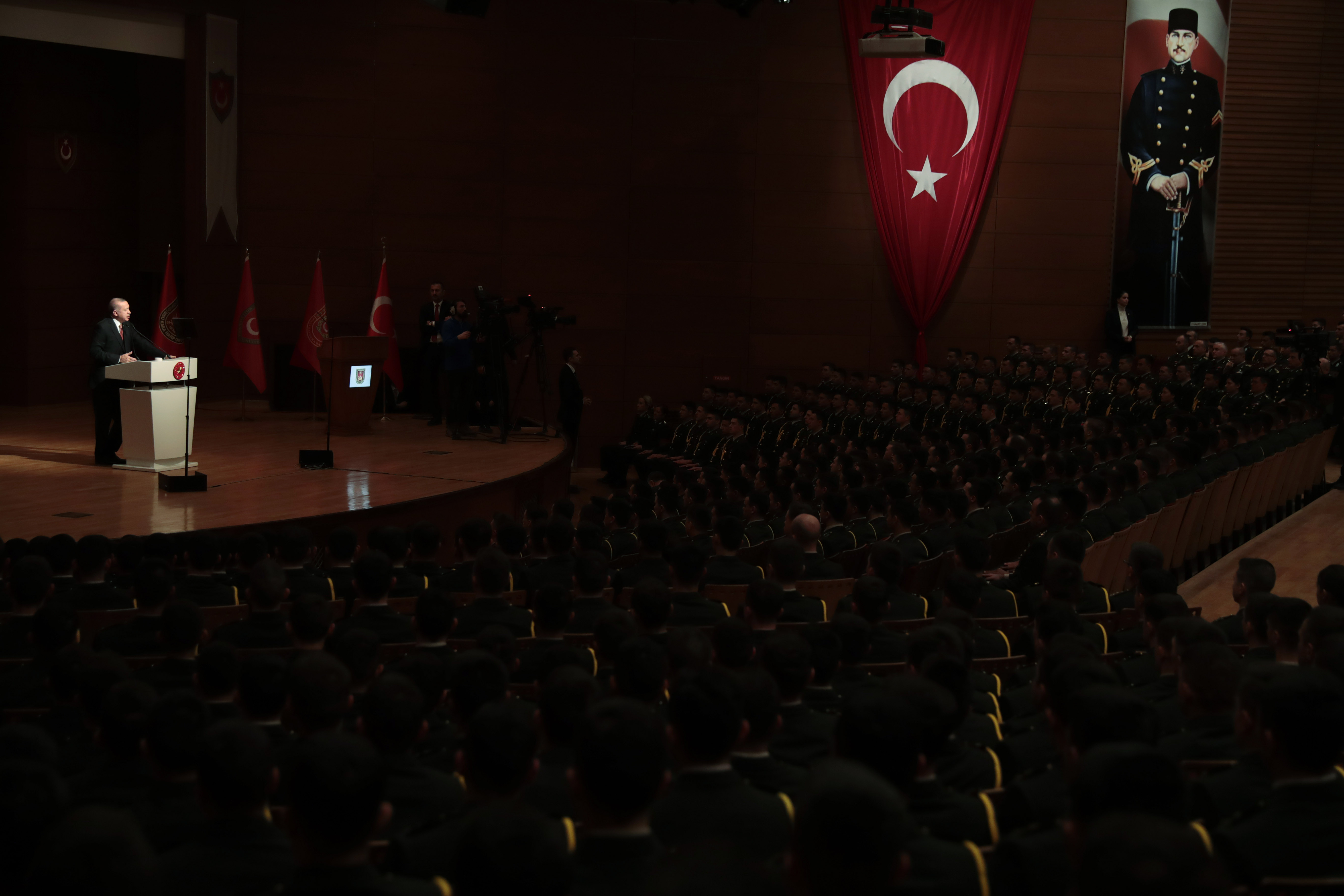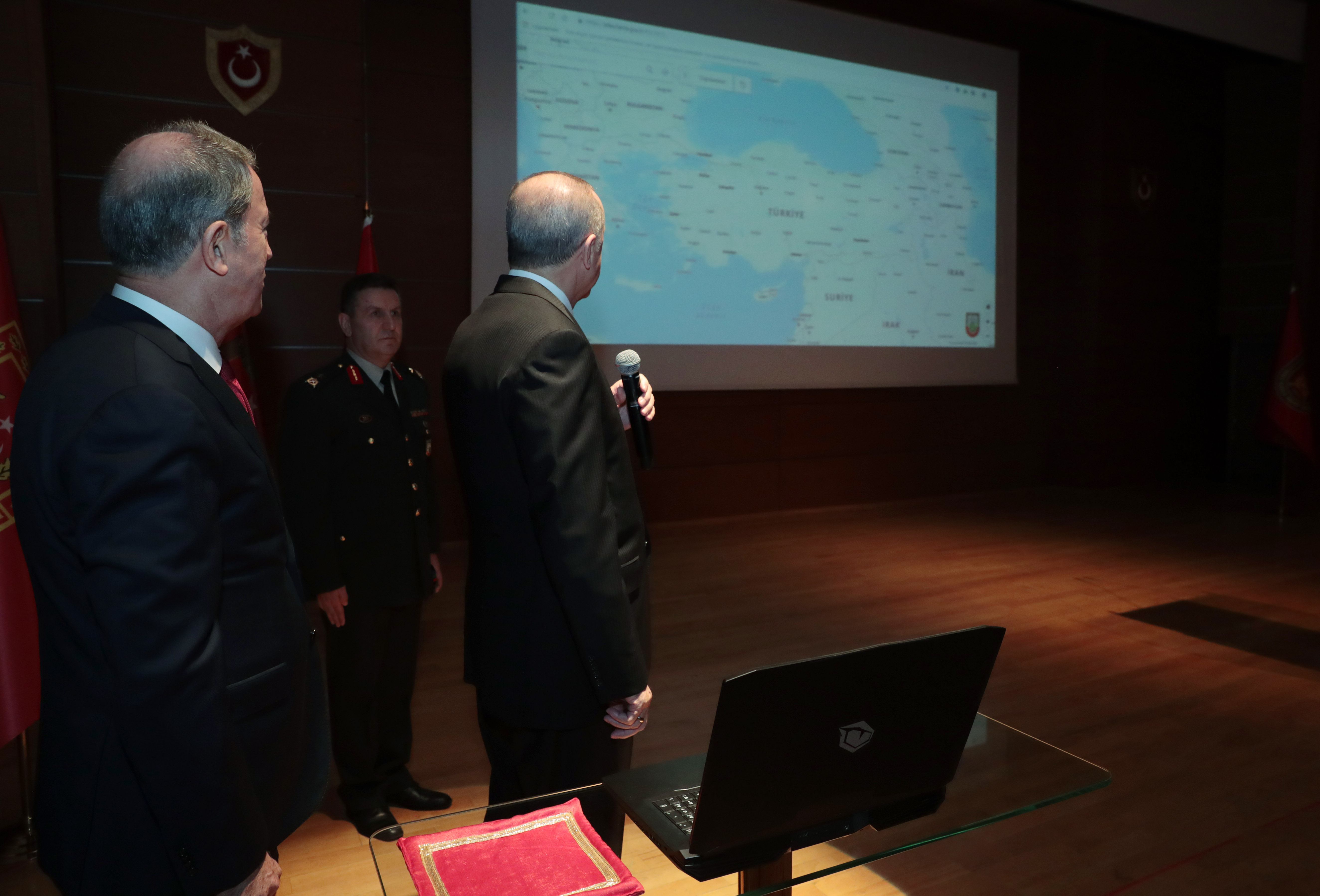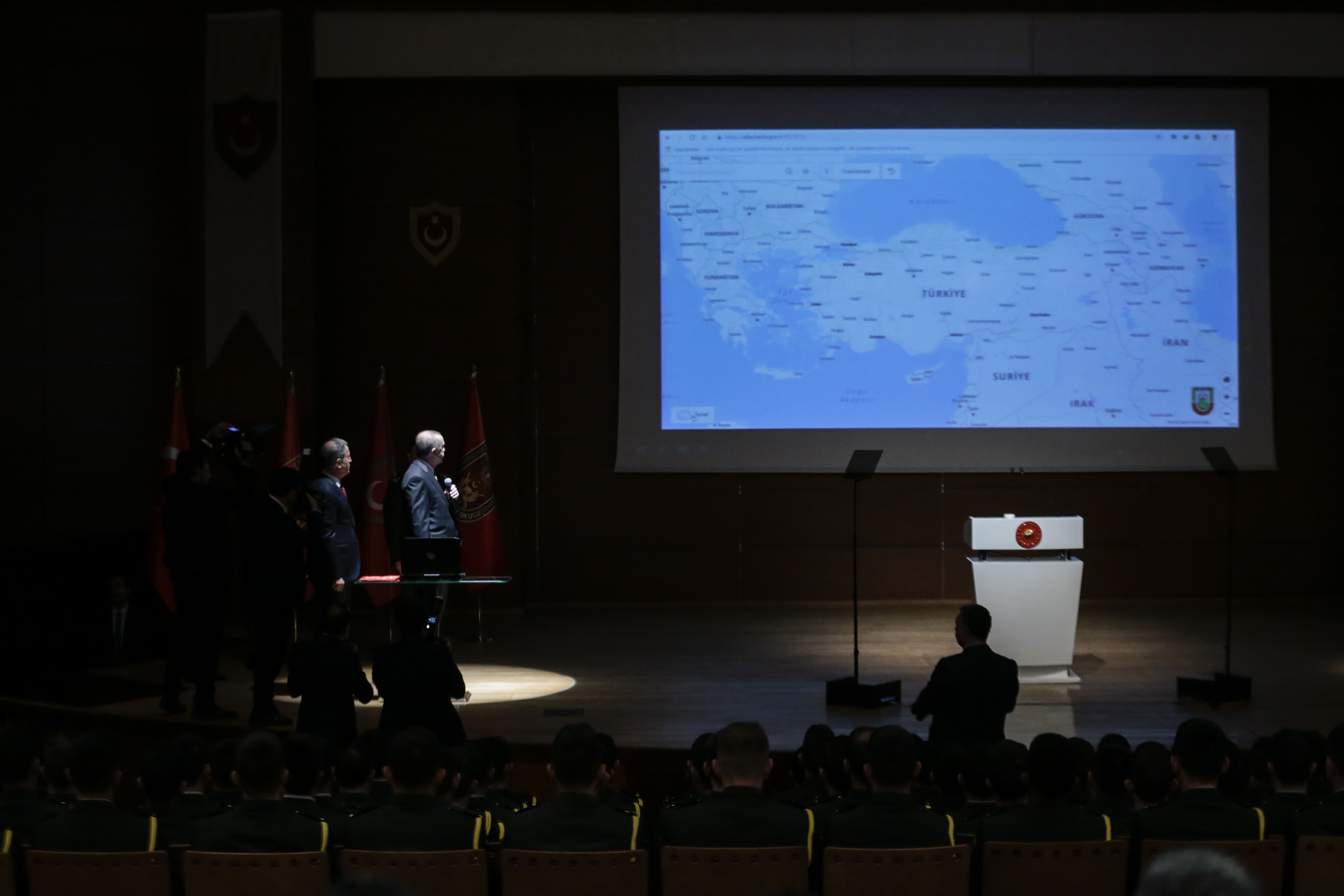 Türkiye Cumhurbaşkanı Recep Tayyip Erdoğan, Milli Savunma Üniversitesi Kara Harp Okulu'nda düzenlenen Kara Harp Okulu HGM Atlas ve HGM Küre Uygulamaları Tanıtım Töreni'nde yaptığı konuşmada, uygulamaların Türkiye'ye hayırlı olmasını temenni etti.
