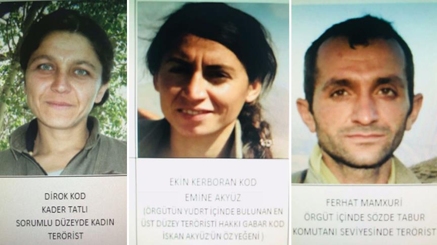 Etkisiz hale getirilen teröristlerin "Dirok" kod adlı Kader Tatlı, "Ekin Kerboran" kod adlı Emine Akyüz ve Ferhat Mamxuri olduğu tespit edildi.