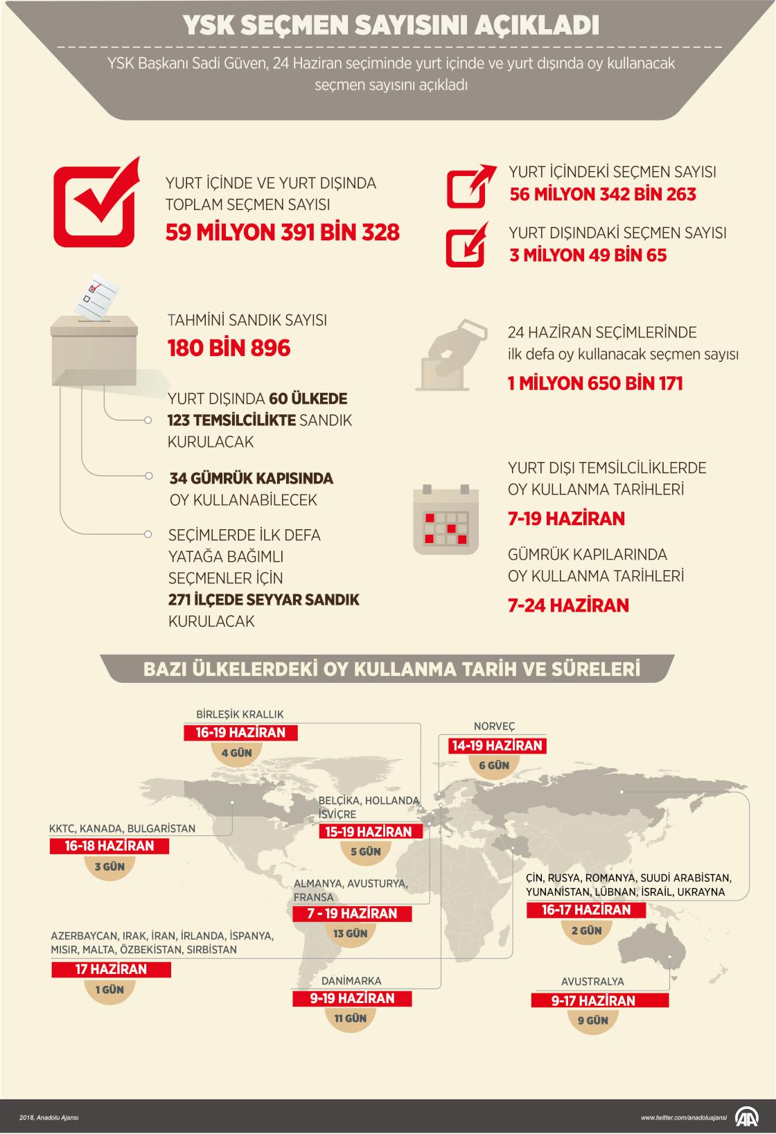 YSK Başkanı Sadi Güven, 24 Haziran seçiminde yurt içinde ve yurt dışında toplam 59 milyon 391 bin 328 seçmenin oy kullanabileceğini bildirdi ( Gözde Gültekinler - Anadolu Ajansı )