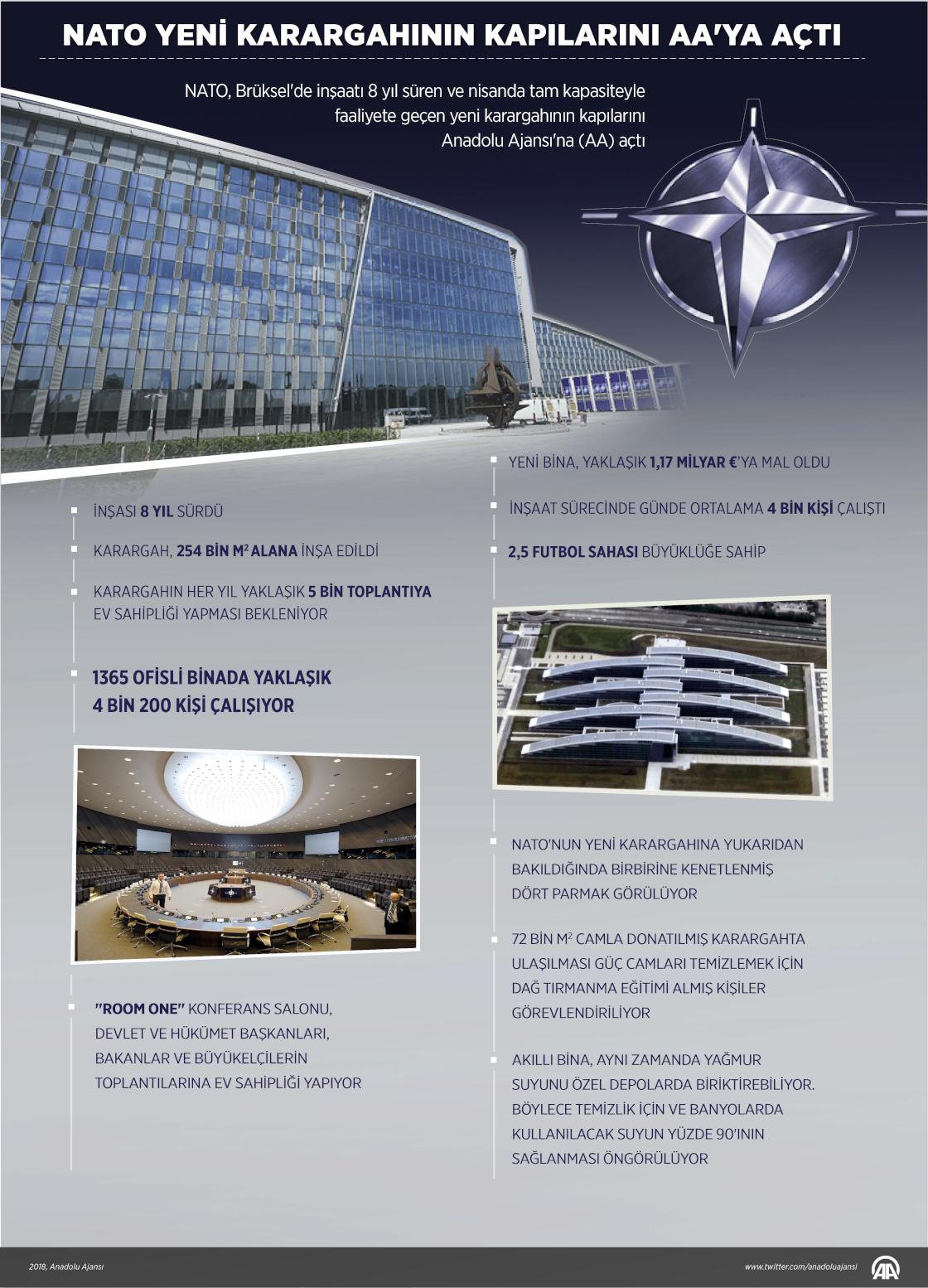 NATO, Brüksel'de inşaatı 8 yıl süren ve geçen ay tam kapasiteyle faaliyete geçen yeni karargahının kapılarını Anadolu Ajansı'na (AA) açtı. ( Gözde Gültekinler - Anadolu Ajansı )