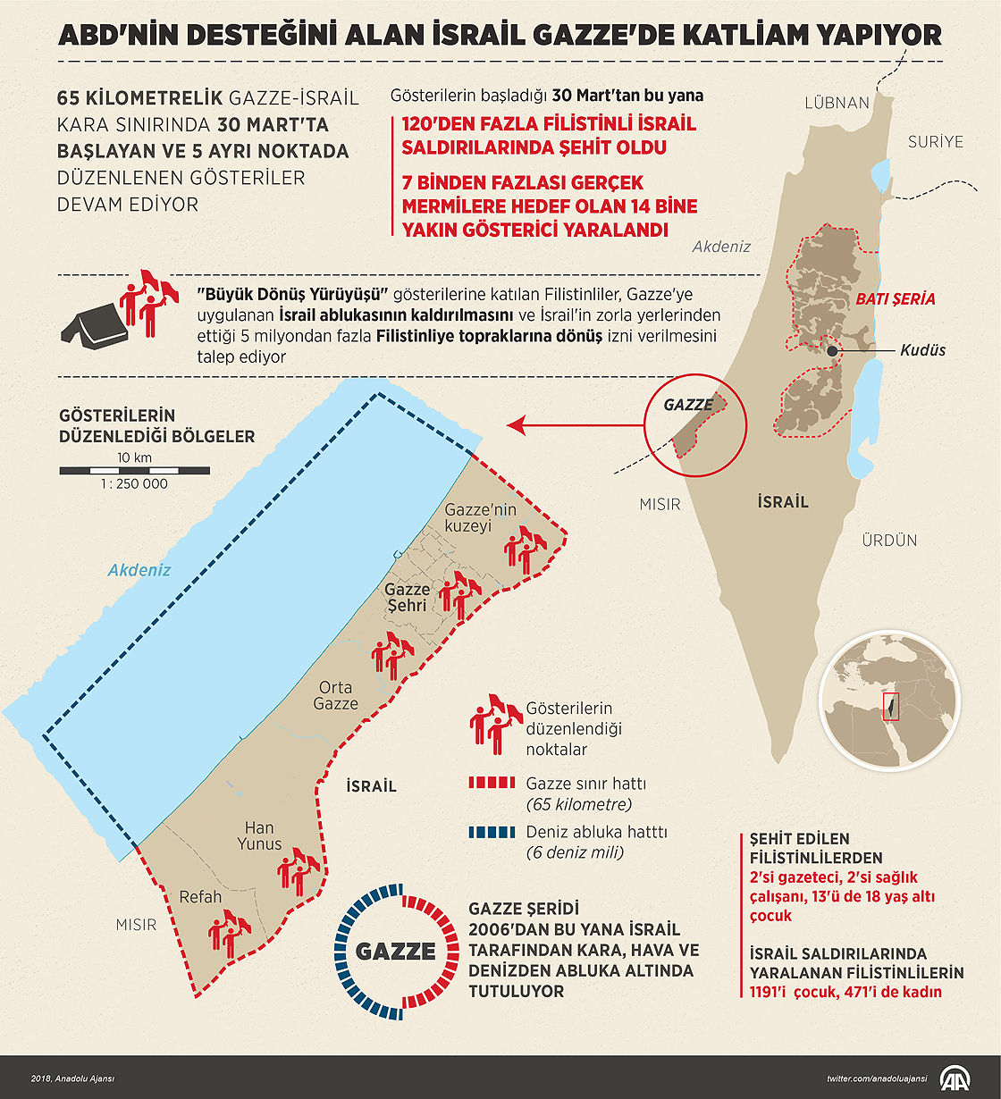 Filistinliler, Gazze'deki İsrail ablukasının kaldırılmasını ve 5 milyondan fazla Filistinli mültecinin topraklarına geri dönüşüne izin verilmesini talep ediyor.