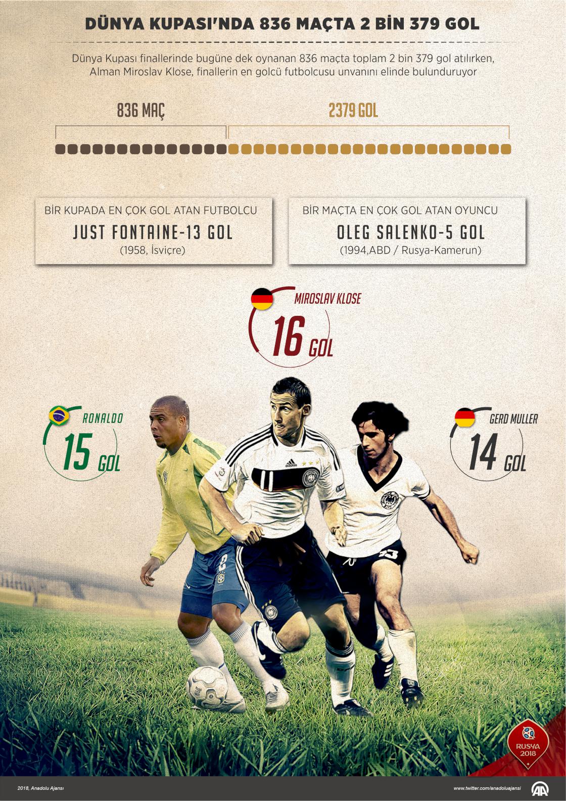 Dünya Kupası'nda 836 maçta 2379 gol