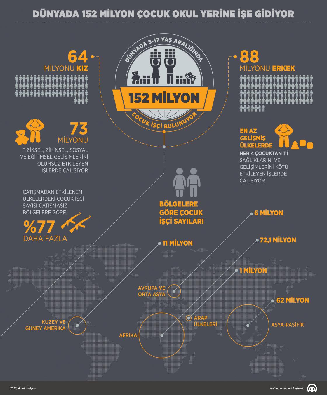 Dünyada 152 milyon çocuk okul yerine işe gidiyor