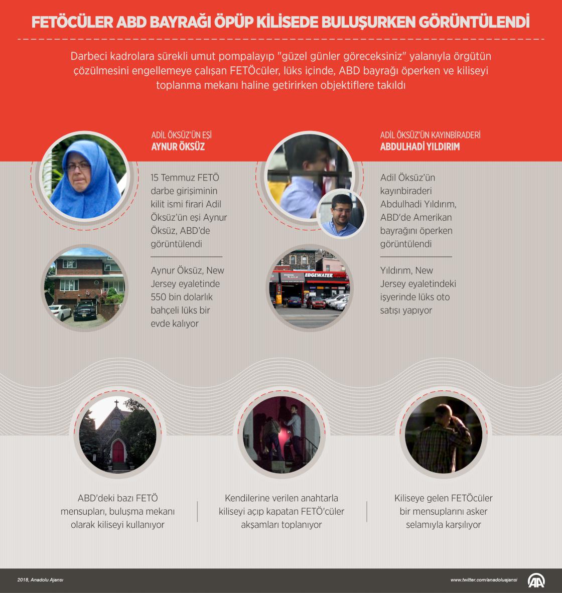 Darbeci kadrolara sürekli umut pompalayıp "güzel günler göreceksiniz" yalanıyla örgütün çözülmesini engellemeye çalışan FETÖcüler, lüks içinde, ABD bayrağı öperken ve kiliseyi toplanma mekanı haline getirirken objektiflere takıldı. ( Ahmet Burak Özkan - Anadolu Ajansı )14 Haziran 2018•Güncelleme: 14 Haziran 2018