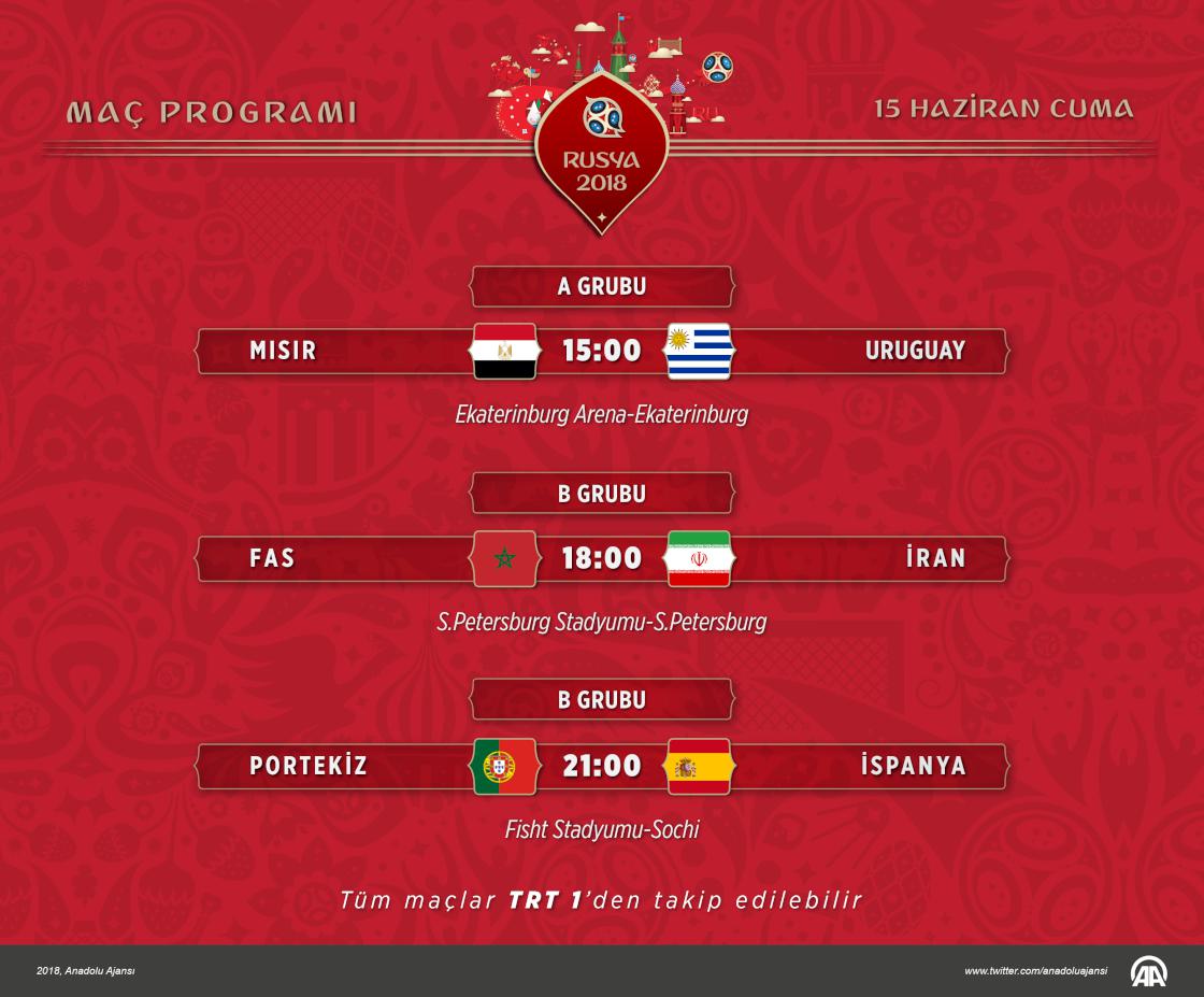 Rusya'da düzenlenen 2018 FIFA Dünya Kupası'nda A Grubu'nda mücadele eden Mısır ile Uruguay, yarın tarihlerinde ilk kez resmi bir maçta karşı karşıya gelecek. Ekaterinburg'daki 35 bin kişi kapasiteli Ekaterinburg Arena'da oynanacak mücadele TSİ 15.00'te başlayacak. ( Kemal Delikmen - Anadolu Ajansı )15 Haziran 2018•Güncelleme: 15 Haziran 2018