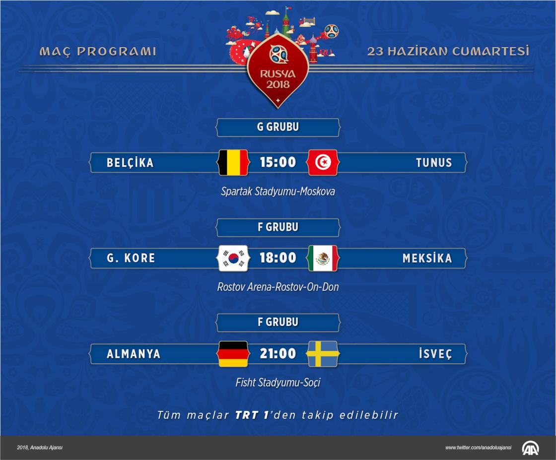 Rusya'nın ev sahipliği yaptığı 2018 FIFA Dünya Kupası'nda heyecan, G ve F gruplarında oynanacak 3 maçla devam edecek.
