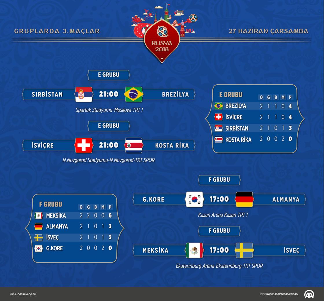 Rusya'nın ev sahipliği yaptığı 2018 FIFA Dünya Kupası'nda heyecan, E ve F gruplarında oynanacak 4 maçla devam edecek. ( Kemal Delikmen - Anadolu Ajansı )
