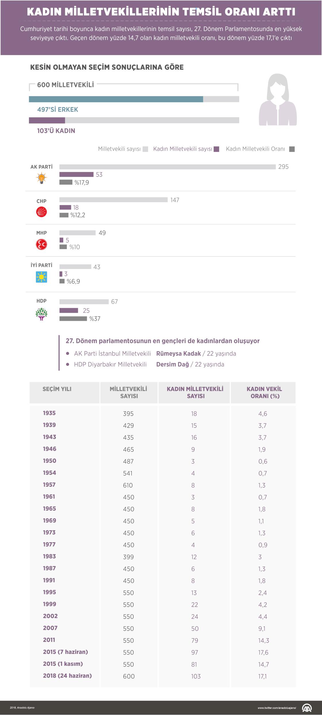 Kadın milletvekillerinin en üst seviyede temsil edildiği Meclis, 27. Dönem Parlamentosu oldu. Geçen dönem yüzde 14,7 olan kadın milletvekili oranı, bu dönem yüzde 17,1'e çıktı. ( Gözde Gültekinler - Anadolu Ajansı )