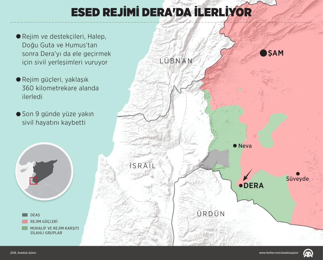 Esed rejimi Dera'da ilerliyor