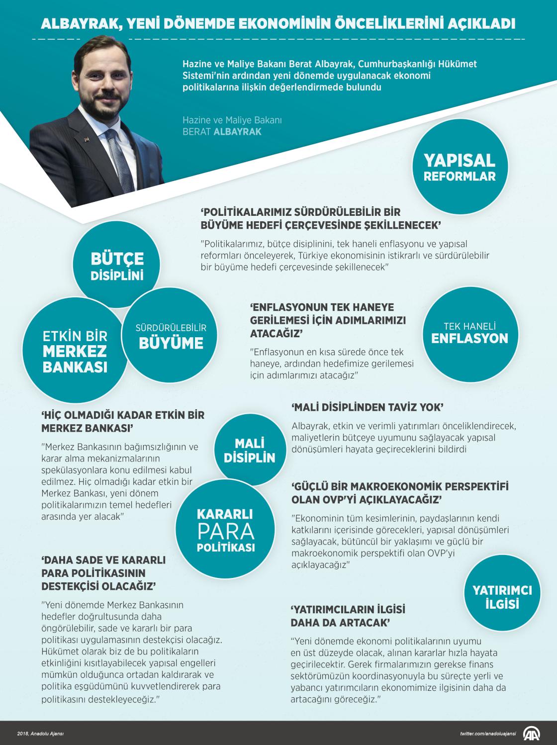 Hazine ve Maliye Bakanı Berat Albayrak, Cumhurbaşkanlığı Hükümet Sistemi'nin ardından yeni dönemde uygulanacak ekonomi politikalarına ilişkin değerlendirmede bulundu. ( Murat Usubaliev - Anadolu Ajansı )
