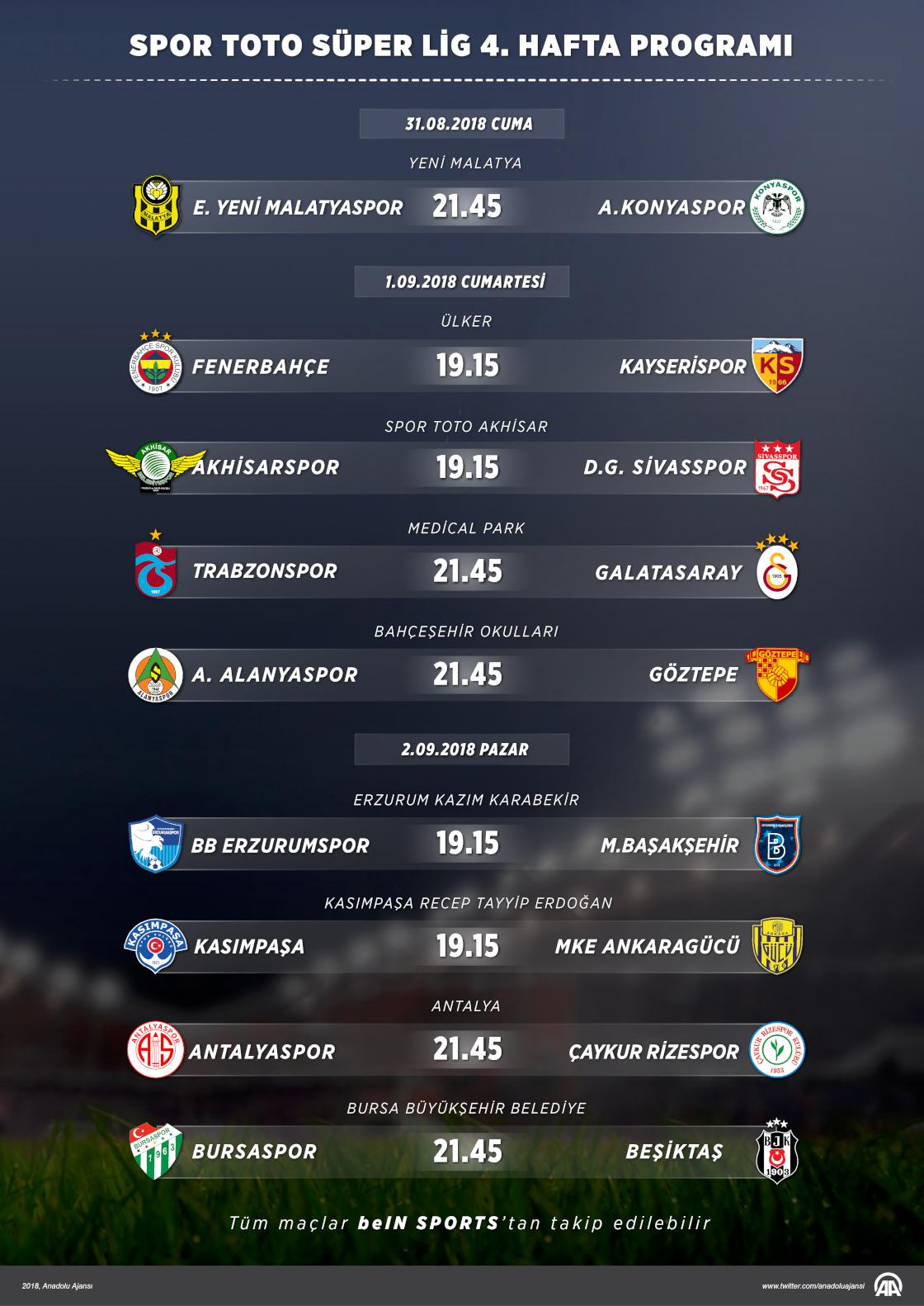 Spor Toto Süper Lig'de 4. haftanın açılış maçında bugün Evkur Yeni Malatyaspor ile Atiker Konyaspor karşı karşıya gelecek. Ligde 1 Eylül Cumartesi 4, 2 Ekim Pazar günü ise 4 maç oynanacak. ( Ahmet Burak Özkan - Anadolu Ajansı )