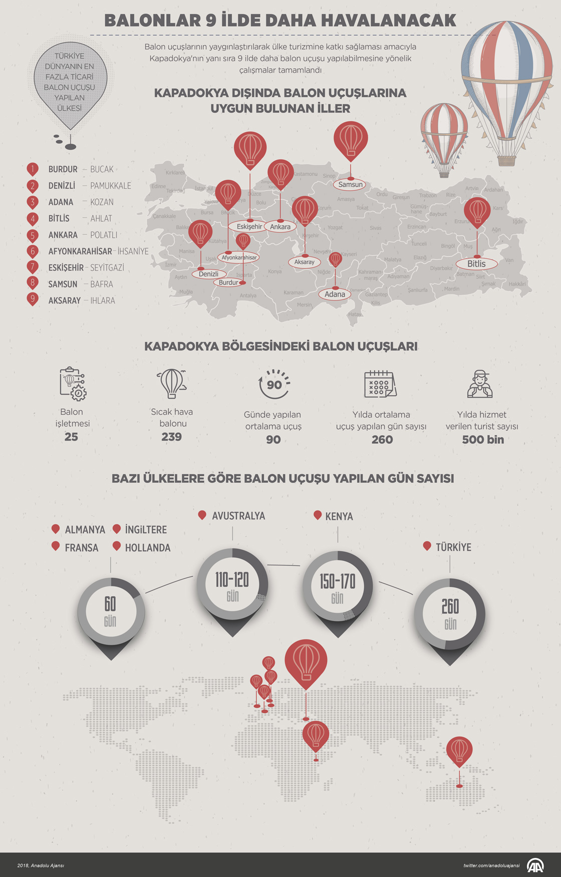 Balon uçuşlarının yaygınlaştırılarak ülke turizmine katkı sağlaması amacıyla Kapadokya'nın yanı sıra 9 ilde daha balon uçuşu yapılabilmesine yönelik çalışmalar tamamlandı. ( Gözde Gültekinler - Anadolu Ajansı )