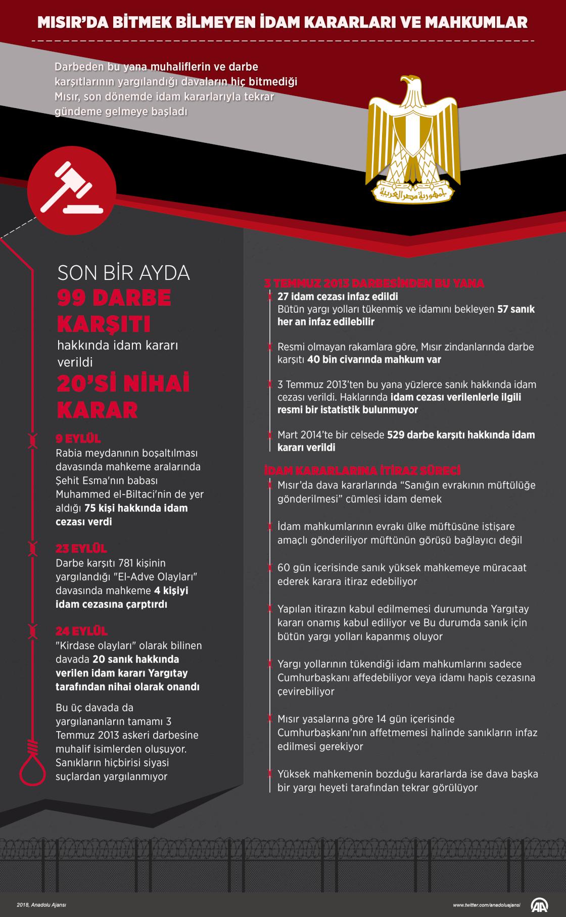 Darbeden bu yana muhaliflerin ve darbe karşıtlarının yargılandığı davaların hiç bitmediği Mısır, son dönemde idam kararlarıyla tekrar gündeme gelmeye başladı. ( Muhammed Ali Yiğit - Anadolu Ajansı )