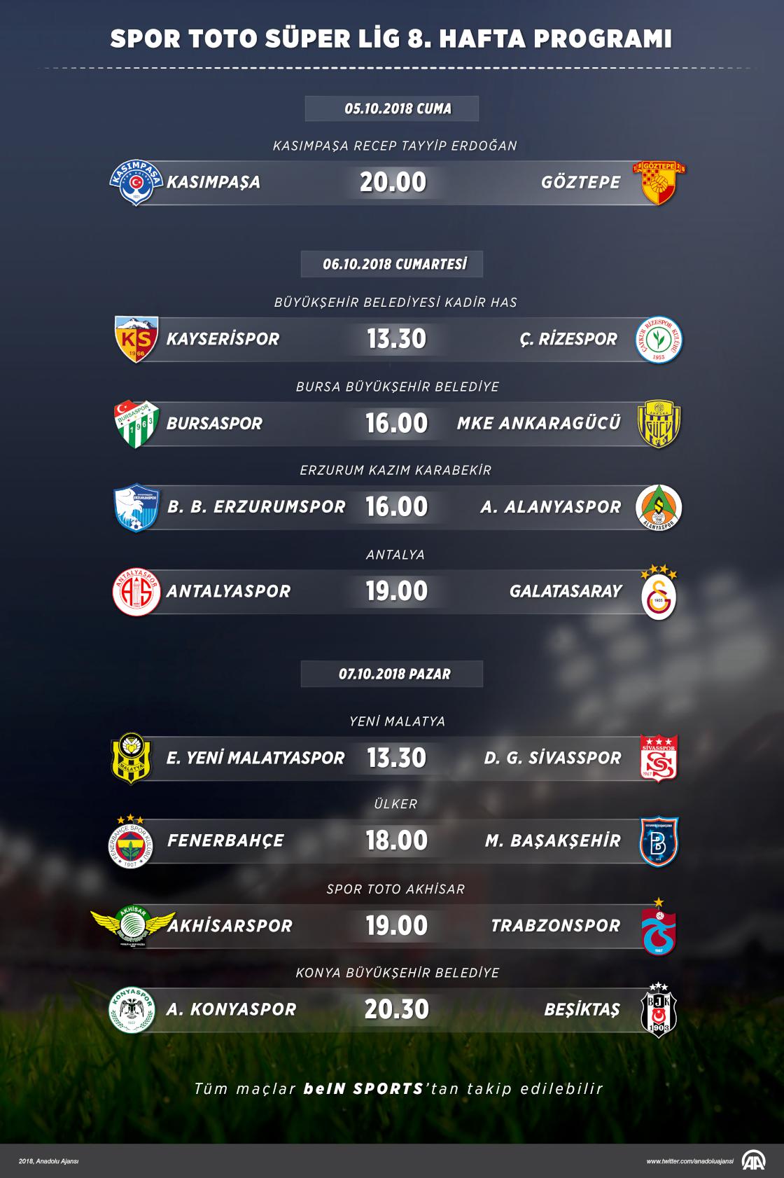 Spor Toto Süper Lig'de 8. haftanın açılış maçında bugün Kasımpaşa ile Göztepe karşı karşıya gelecek. Ligde 6 Ekim Cumartesi 4, 7 Ekim Pazar günü 4 maç oynanacak. ( Ahmet Burak Özkan - Anadolu Ajansı )