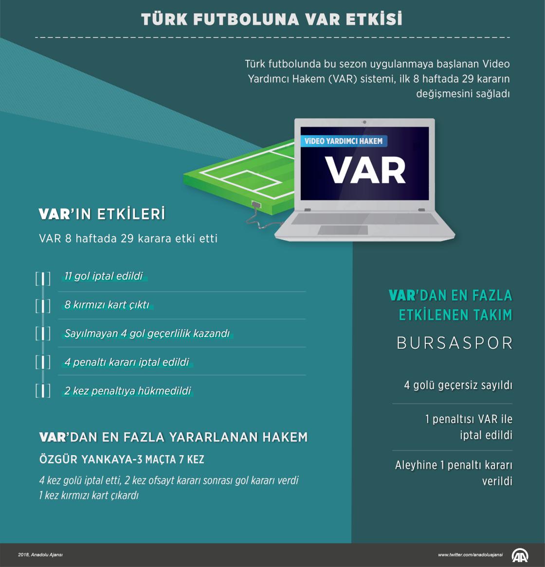 Türk futbolunda bu sezon uygulanmaya başlanan Video Yardımcı Hakem (VAR) sistemi, ilk 8 haftada 29 kararın değişmesini sağladı. ( Kemal Delikmen - Anadolu Ajansı )